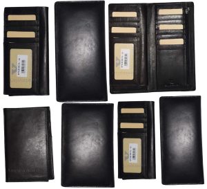$60.006 Women/Man's Leather Checkbook Wallet 4 bill pockets 1 zip pocket 7 card ID new.Description:Buy the lot and save a lot.This item is a purely beautiful leather checkbook wallet with 4 bill spaces and a zip change purse. It can be utilized by either women or man. This checkbook wallet is super slim, yet roomy....