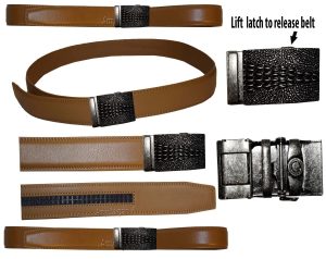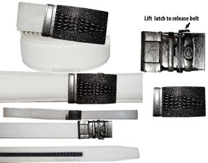 $24.95Men's Belt. length 30" Leather Dress Belt. Auto Lock Crocodile Skin Printed Buckle.Description:This is a new "Quick-Lock" all-in-one dress and casual belt. It is a fine quality and very fashionable men's leather belt. It is cut-able and adjustable. It has an easy on off auto-lock detachable metallic clip on buckle.Act now it won't last!Item Details:· ...