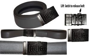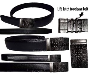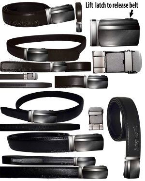 $24.95Visit Store See Wallets See Belts See Gloves See Bags See Passport cases.Real Leather Men’s Belt. (L) Automatic lock. Dress & Casual belt. Fashion belt". Description:This Belt Fits Every Time, all the Time!It has a Ratcheting track system.One Click Quick release lever. A look that fits Any Occasion.No more stretched or loose fitting belts. Micro-adjustable...