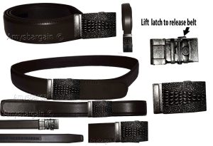 $18.95Real Leather Men’s Belt. (M) Automatic lock. Dress + Casual belt. Fashion belt". Description:This is a new "Quick-Lock" all-in-one dress and casual belt. It is a and very fashionable men's leather belt. It is cut-able and adjustable. It has an easy on off auto-lock detachable metallic clip on buckle. Act now it won't last!Item Details:·...