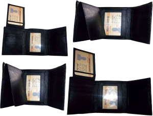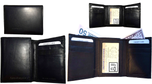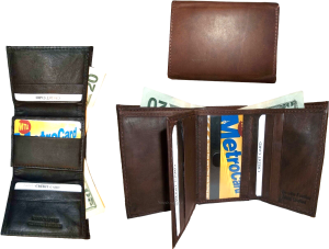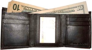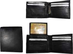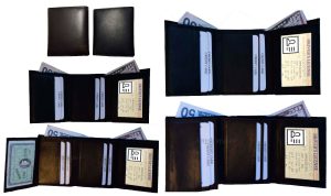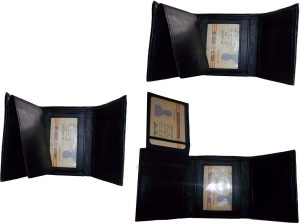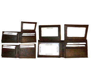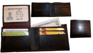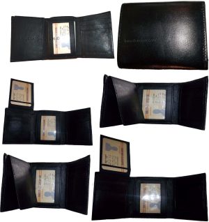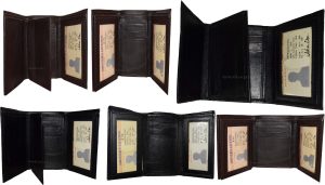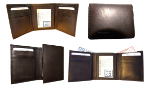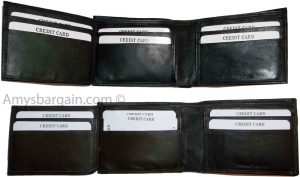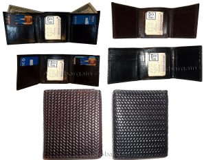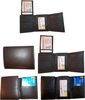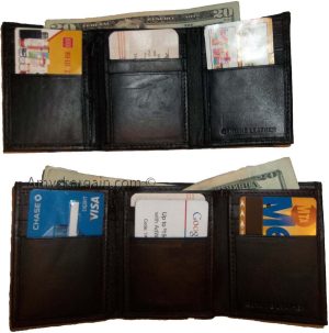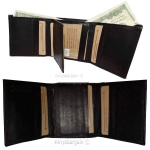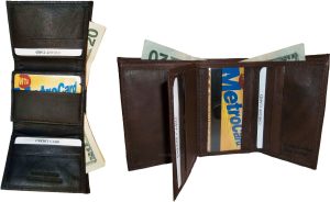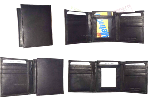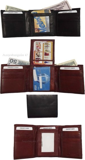 $9.95Man’s Leather Wallet Trifold wallet New Genuine Leather Billfold wallet 7 cards.Description:This is a Trifold/Bifold wallet with bi fold features. It is another wallet; it is great for a gift for that special someone, or, just treat yourselves to it.This tri fold men's wallet has a transparent window, 7 card spaces. A bill fold compartment....