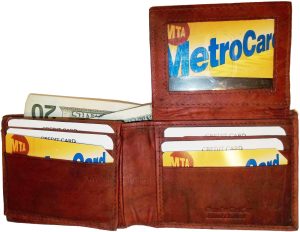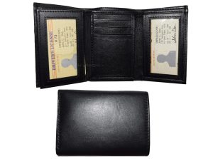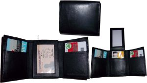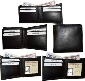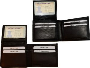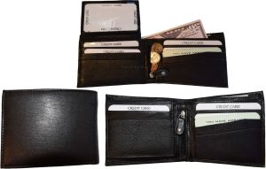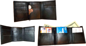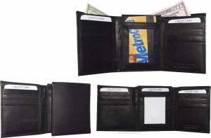 $18.95Man's wallet Buff Leather Trifold wallet 1 ID window 9 card 2 bill slots. Description:This man's quality soft calfskin leather wallet comes in the box. It would make a great gift item, or treat yourselves to it.This trifold men's wallet is a full size wallet with ID window and 6 card spaces. Act now! only a few...