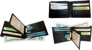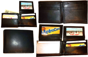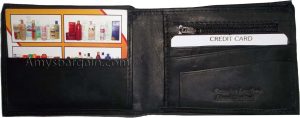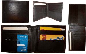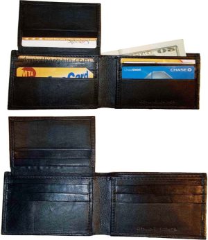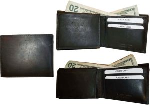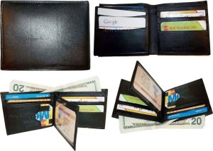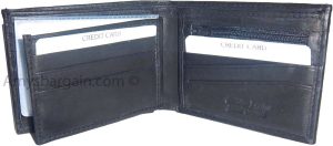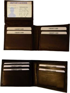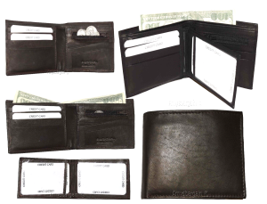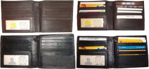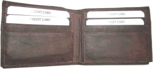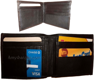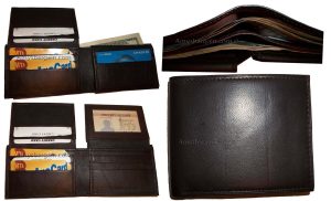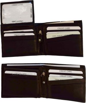 Man's Leather Wallet Black Brown bifold wallet 2 bill slots 9 credit card apace