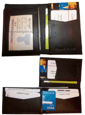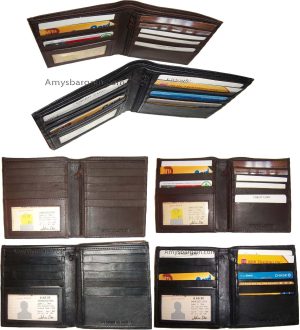 $12.95man's bi fold leather new wallet 12 credit cards 2 ids 2 sued lined bill slots.Description:This wallet is made out of fine quality fine grain cowhide leather. This men's wallet has 2 easy in-and-out I'D windows, 12 card spaces and 2 suede lined billfold compartments. This wallet would make a nice gift, or, treat yourself...