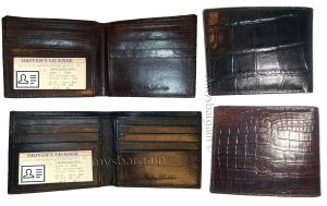Man's Trifold Leather wallet Brown Crocodile skin Printed 2 billfolds 9 cards