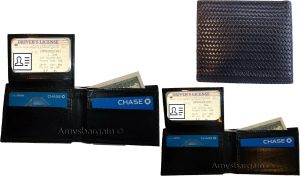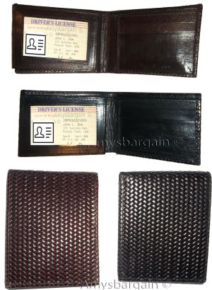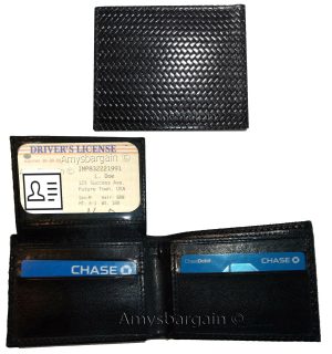 $37.953 new man's bi-fold leather wallet credit card id change purse 2 bill slot. Description:This is a very stylish woven printed leather mans wallet with an easy-in-out ID case. It has 2 billfolds and 9 card slots. This wallet would make a great gift for that special someone that has it all, or treat your...