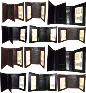 $69.95Lot of 8 Man's Wallet New Style Trifold Leather wallet ID 2 Bill slot New wallet. Description:Buy the lot and save a lot!This is another top wallet; it is great for a gift for that special someone that has it all, or just treat your selves to it.This trifold man's wallet has a transparent window,...