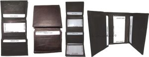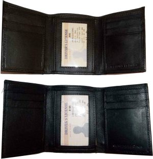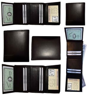 $15.95man's trifold Leather wallet 1 ID window 9 card 2 bill slots new wallet . Description:This man's fine quality soft calf skin leather wallet would make a nice gift for that special someone that has it all, or treat yourself to it. This trifold man's wallet is a full size wallet with ID window and...