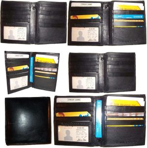 $49.956 Man's Leather black wallet 12 credit card Holder 2 ID 2 Bifold slots Unbranded.Description:.This wallet would make a great gift , or, treat yourself to it. This man's wallet has 2 easy in-and-out ID windows, 12 card spaces and 2 bill fold compartments.Item Details:Item: Leather man's wallet.Material: Genuine leather.12 card spaces.2 Billfold compartments.2 ID...