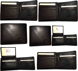 $24.95Leather men's Bifold wallet, Black Billfold wallet 9 Credit card 3 ID New in Box.Description:This Fiza NY wallet is very stylish. It is well-made out of strong leather. This men's wallet has 2 flip side 3 ID center pieces. This wallet would make a nice gift item, or, treat yourselves to it.It has 3 ID...