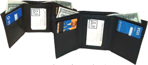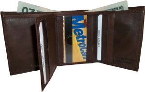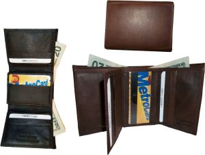 man's wallet leather trifold 12 credit card 2 bill slots black brown tan cognac