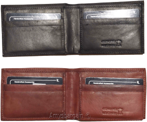 $9.95man's skinny leather bi-fold wallet 6 bank card holder 2 bill pockets new item.Description:This is a slim new roman styled soft yet; durable leather man's wallet. It has 1 ID window and 2 billfold compartments.Act now! it won't last at this price. Item Details:Item: New style men's leather wallet.Material: Fine grain Leather.6 Card spaces.1 ID, transparent...