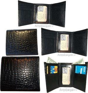 $37.952 Inew styled Crocodile Printed Leather Man's Trifold wallet 2 bill slots 9 card. Description:This is a very stylish Italian style crocodile printed leather men’s wallet with an easy-in-out ID case. It has 2 billfolds and 9 card slots. This wallet would make a great gift for that special someone that has it all, or...