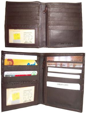 $11.95Man's Wallet. Brown Bi-fold Leather Wallet 12 Credit Cards 2 IDs B New style.Description:Italian style leather man's wallet with a hidden change purse/billfold pocket, 1 ID window and 2 suede lined bill fold compartments.Item Details:Item: Italian styled man's wallet.Materiel: top grain Leather.9 card spaces2 Sued lined billfold compartments.1 ID transparent window.1 Hidden zip change purse...