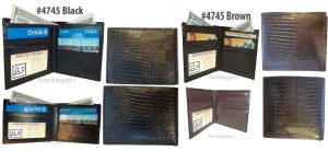 $19.95crocodile skin printed leather men's bifold wallet 2 bill slot 9 card space 1 ID.Description:This is a very stylish crocodile skin printed leather men’s wallet with an easy-in-out ID case. It has 2 billfolds and 6 card slots. This wallet would make a great gift for that special someone that has it all, or treat...