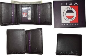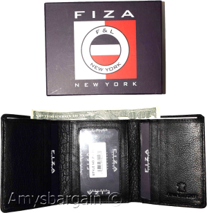 $18.95man's Trifold wallet FIZA NY leather 1 ID 6 card 2 bill slots brand new in Box. Description:This Fiza NY soft natural grain leather trifold wallet is very stylish. It is well-made. It is made out of strong leather. This man's wallet has 2 large bill folds, it would make a great gift item, or,...