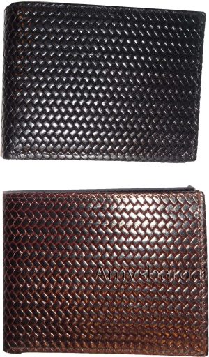Italian Styled Woven Printed Leather man's bi fold wallet 2 bill slots 6 cards