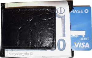 $31.95crocodile skin printed leather money clip black bifold billfold new lot of 4.Description:This very beautiful black crocodile skin printed leather money clip is easy to use. It is stylish, small and lightweight. This money clip would make a great gift item. Or, treat yourselves to it.It fits all types of national and international currencies.Item Details:Item:...