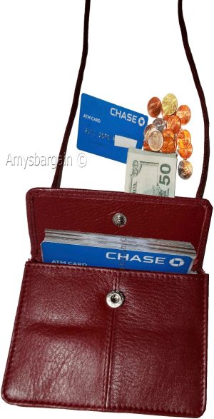 $10.95Card case, leather black wallet on a cord, conceal Credit cards, IDs, Money etc.Description:This is a thin leather concealable neck string wallet with an adjustable cord it can be tucked under your clothes. Contents can immediately be accessible, so you can quickly present an ID, credit card or a business cards in a flash. It is much safer...