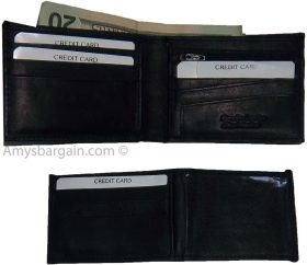Description:This leather men's bi-fold wallet has 6 card spaces, a mini zip pocket and 2 suede lined billfolds.Act now! They won't last.Item Details: