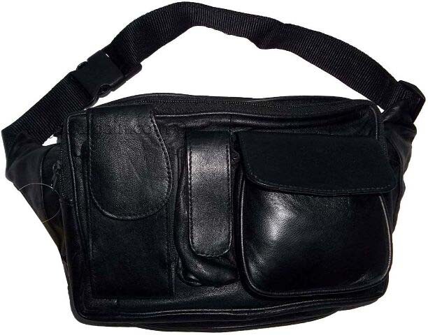 This beautiful Jumbo size leather waist pouch is made out of a very soft top grain leather, it comes with 2 zip main compartments, 1 zip middle pocket, 3 other small pockets and an adjustable waist strap