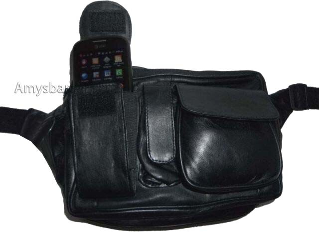 2 Leather waist pouch large waist bag leather bag Fanny pack sports bag 5 pocket.