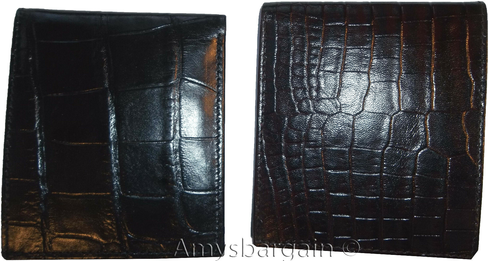 2 New Crocodile Skin Printed Leather man's bi fold wallet 2 bill slots 6 card ID.Description:This is a very stylish crocodile skin printed leather mans wallet with an easy-in-out ID case. It has 2 billfolds and 6 card slots. This wallet would make a nice gift for that special someone that has it all, or treat your selves to its qualities.It has an easy in-and-out ID window, 6 card spaces and 2 lined bill fold pockets.Item Details: