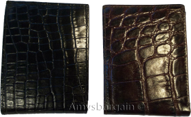 Description:This is a very stylish crocodile skin printed leather mans wallet with an easy-in-out ID case. It has 2 billfolds and 6 card slots. This wallet would make a great gift for that special someone that has it all, or treat your selves to its qualities.It has an easy in-and-out ID window, 6 card spaces and 2 lined bill fold pockets.Item Details: