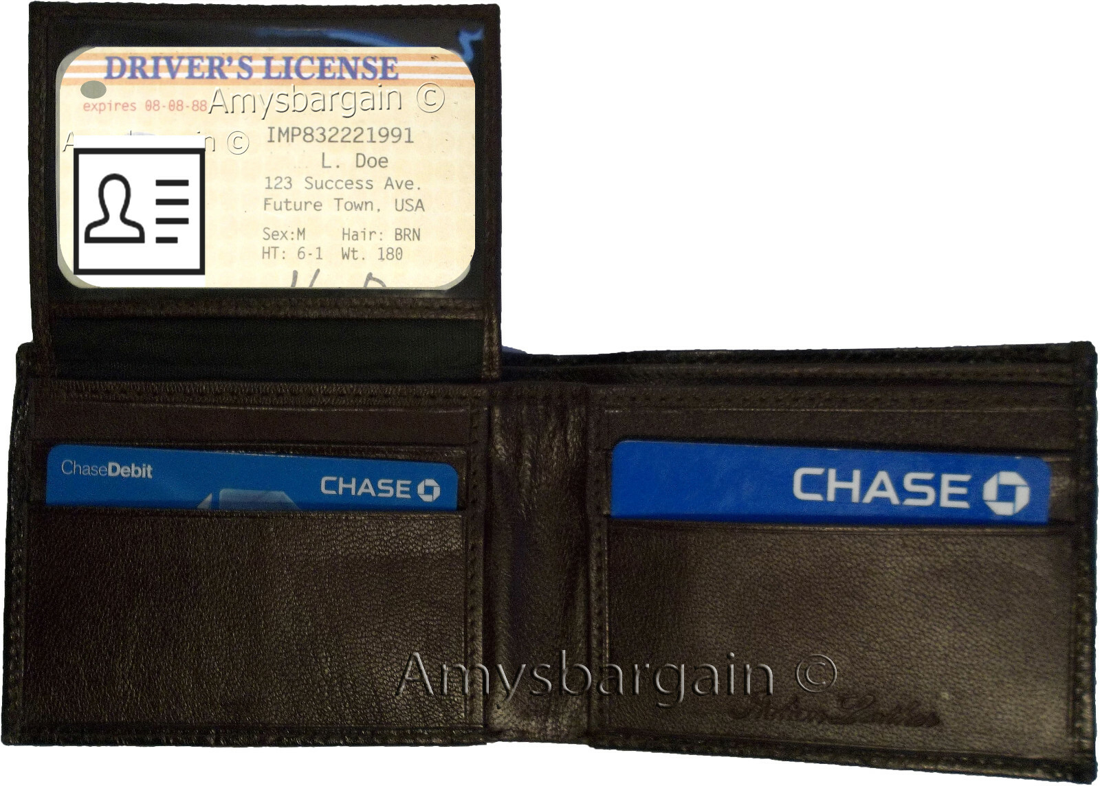 Description:This is a very stylish crocodile skin printed leather mans wallet with an easy-in-out ID case. It has 2 billfolds and 6 card slots. This wallet would make a great gift for that special someone that has it all, or treat your selves to its qualities.It has an easy in-and-out ID window, 6 card spaces and 2 lined bill fold pockets.Item Details:
