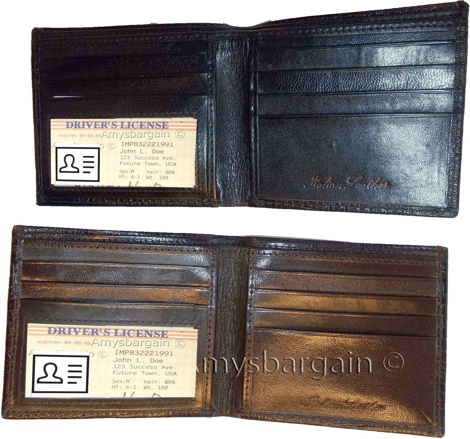 2 new style lizard printed leather man's bi fold wallet 2 bill slots 8 card.Description:Buy the lot and save a lot!This is a very stylish Italian style lizard skin printed leather mans wallet with an easy-in-out ID case. It has 2 billfolds and 6 card slots. This wallet would make a great gift for that special someone that has it all, or treat your selves to its qualities.It has an easy in-and-out ID window, 6 card spaces and 2 lined bill fold pockets.Item: Details: