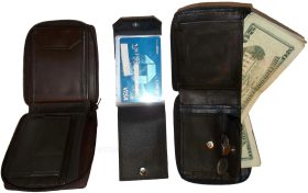 2 New Zip around men's Leather wallet 1 Block 1 Brown unbranded Zip, Bifold bnwt