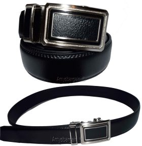 This is a new "Quick-Lock" all-in-one dress and casual belt. It is a fashionable men's leather belt. It is cut-able and adjustable. It has an easy on off auto-lock detachable metallic clip on buckle.