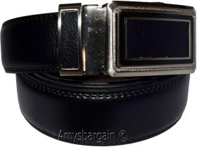 Black Leather Men's Belt XL Automatic lock Dress / Casual belt adjustable belt