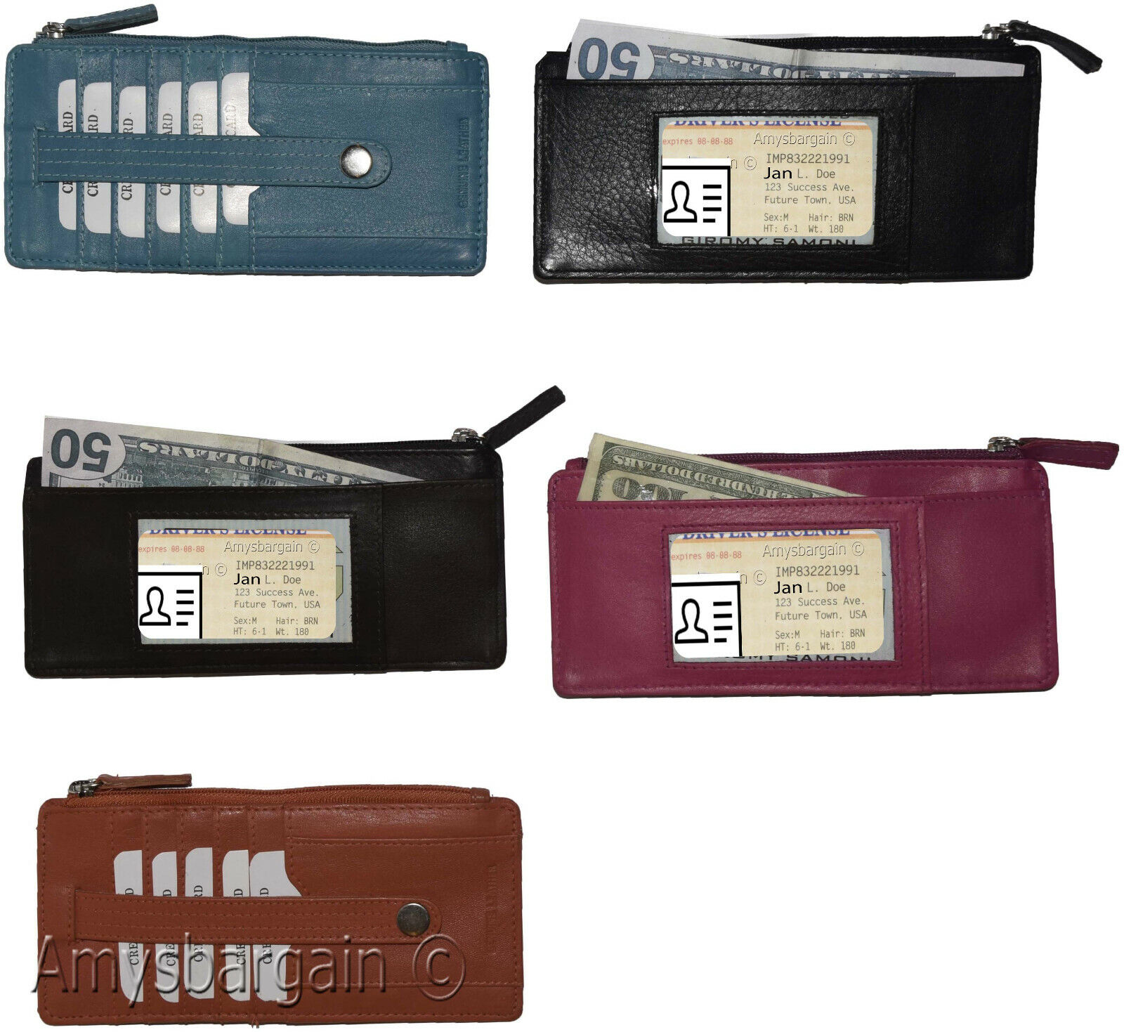 Leather Slim Multiple card organizer Credit card bill ID wallet Zip change purse.