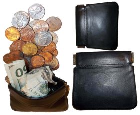 ·Re-order number: cp317.This strong hard squeeze easy to use metal framed women and men's leather coin purse is great for carrying coins and some bills or other things. It is easy to carry around in your pocket, handbag or briefcase.