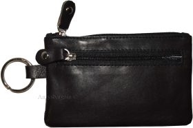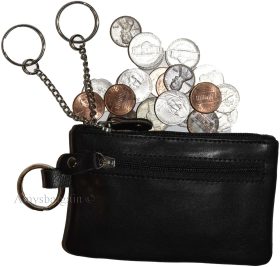 - Item: Black Leather change purse, Zip coin wallet.