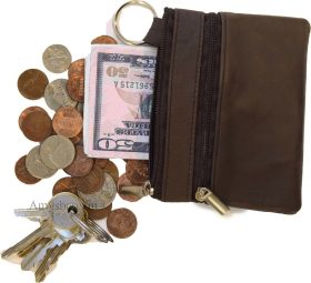 Change purse, Zip coin wallet, Leather change purse w/key ring cards, bills BN