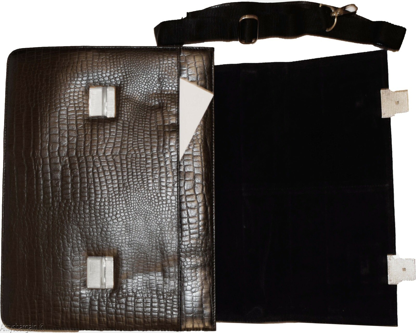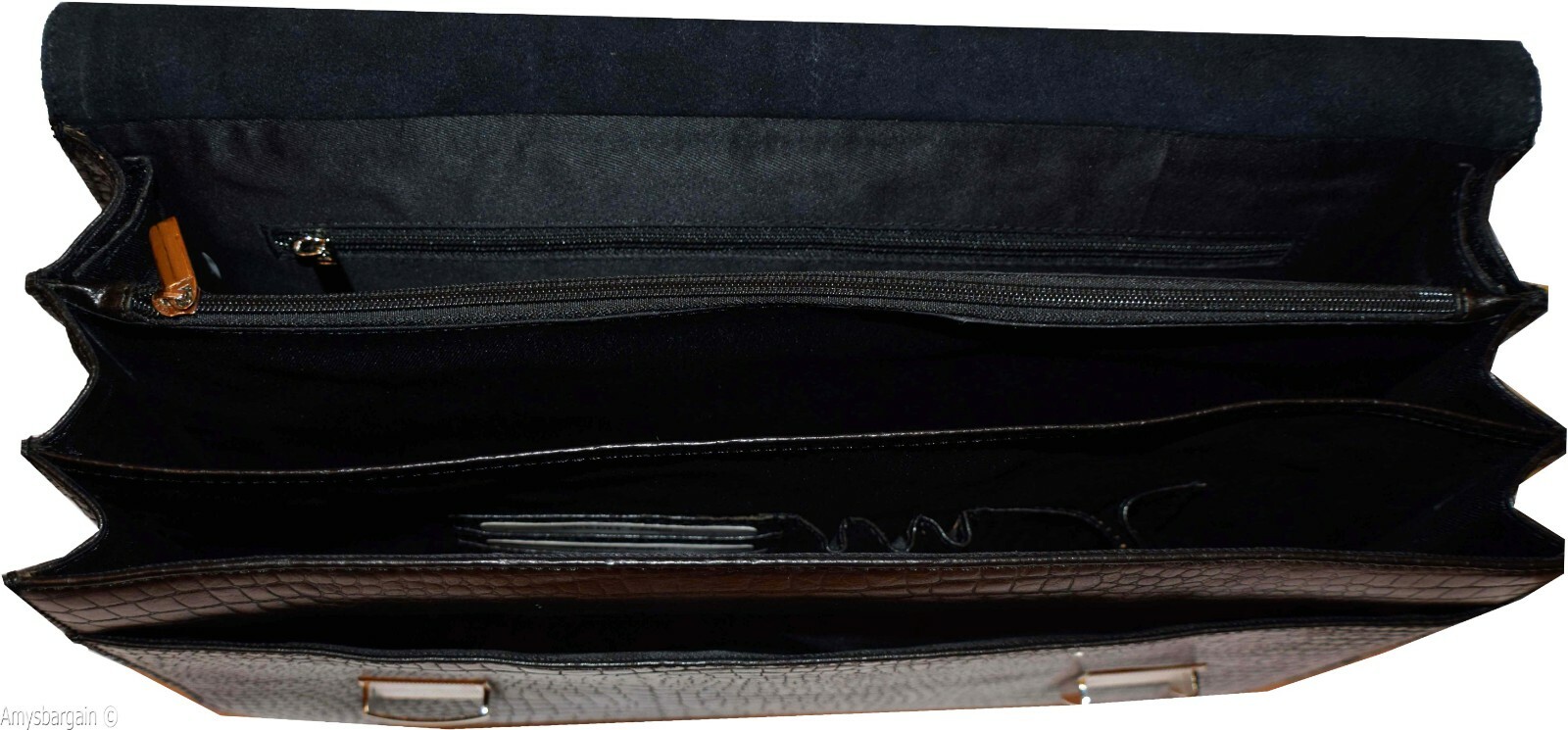 This is a roomy multiple gusseted well-constructed briefcase with two over flap secure straps for extra strength and stylishness.