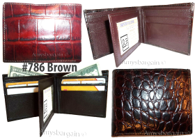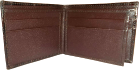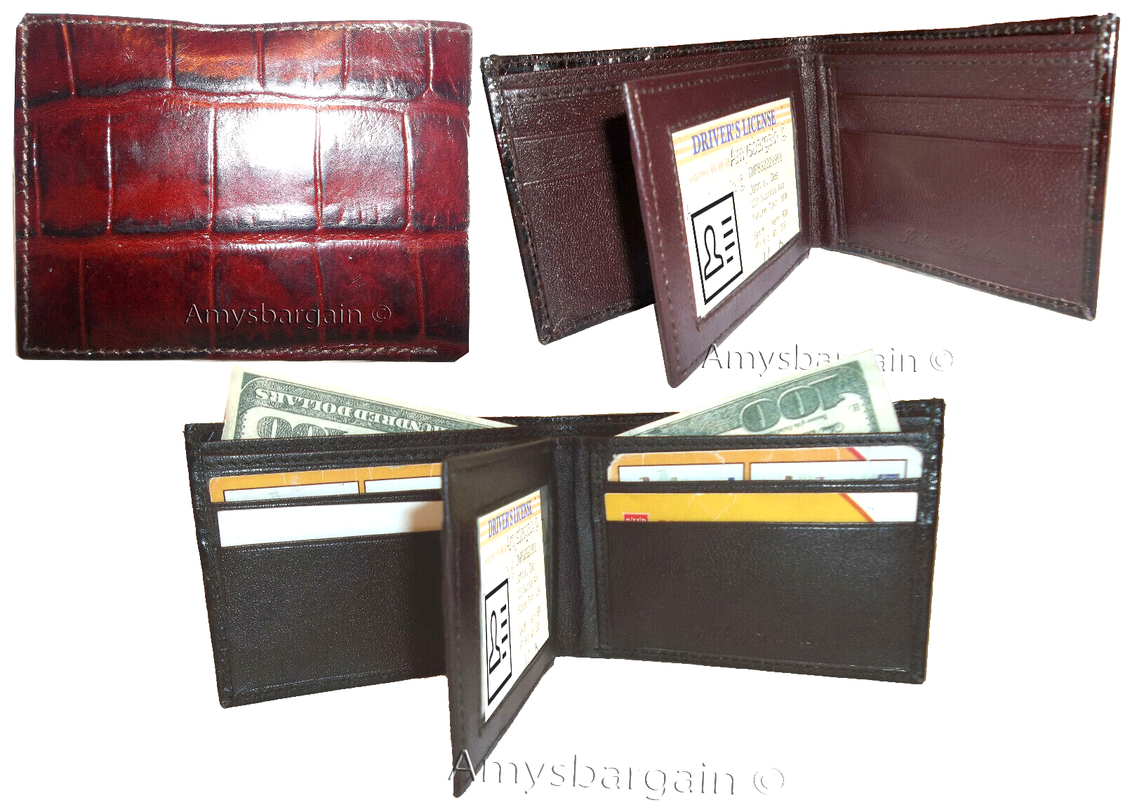Description:This is a very stylish crocodile skin printed leather mans wallet with an easy-in-out ID case. It has 2 billfolds and 6 card slots. This wallet would make a great gift for that special someone that has it all, or treat your selves to its qualities.It has an easy in-and-out ID window, 6 card spaces and 2 lined bill fold pockets.Item Details: