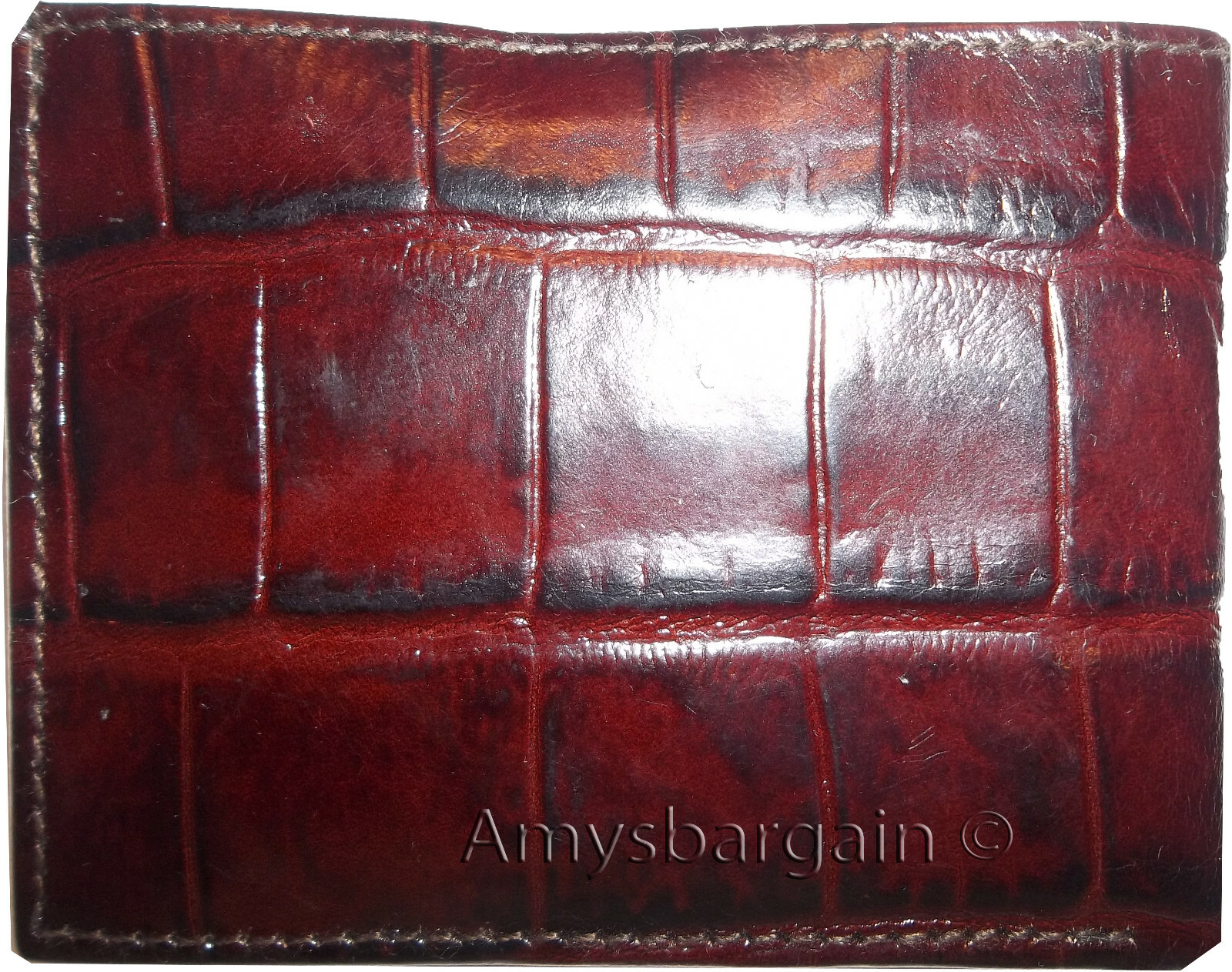 crocodile skin printed leather man's bi fold wallet 2 bill pockets 6 card ID.