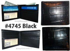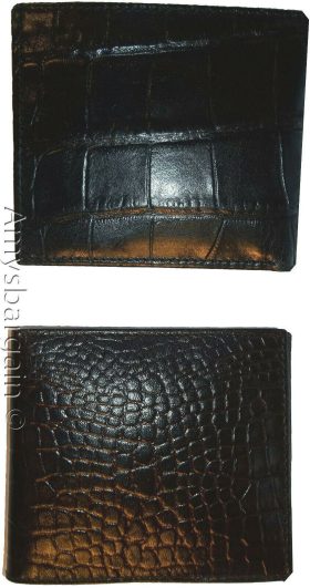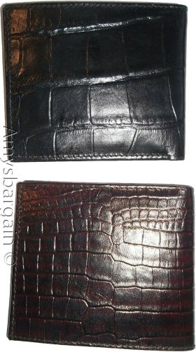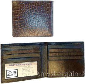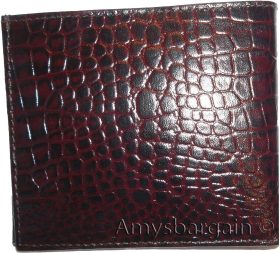 crocodile skin printed leather men's bifold wallet 2 bill slot 9 card space 1 ID