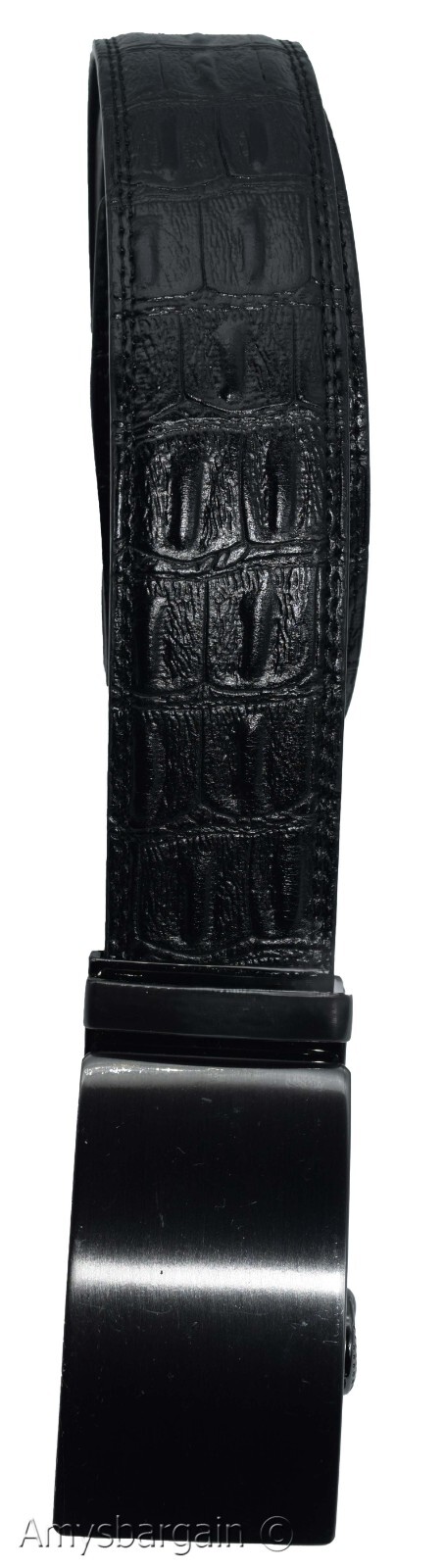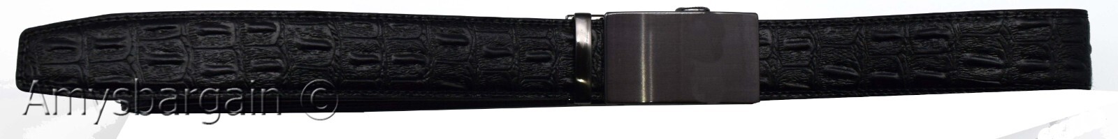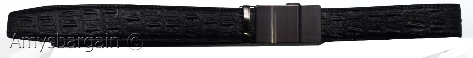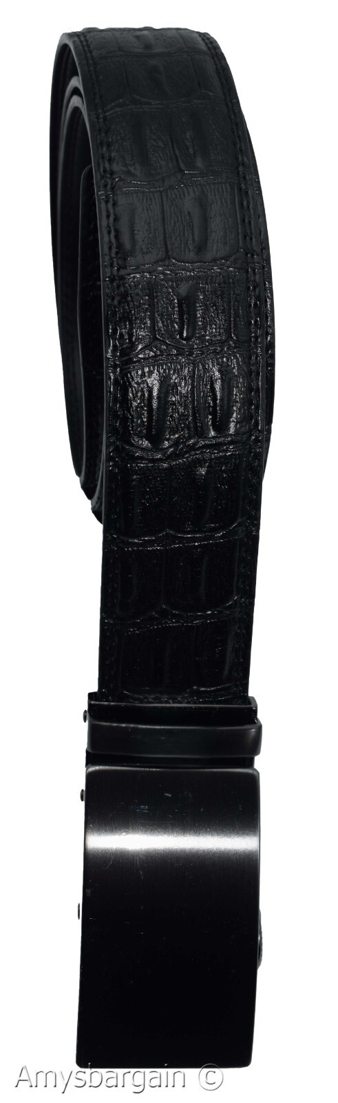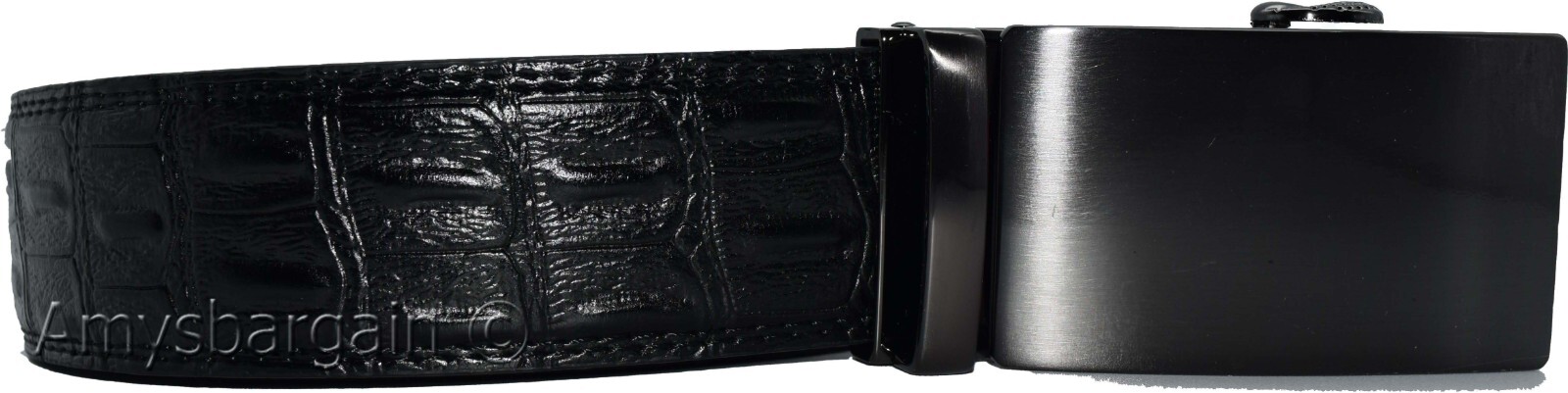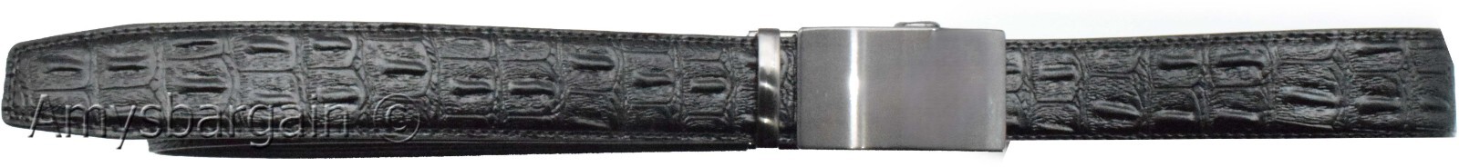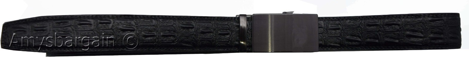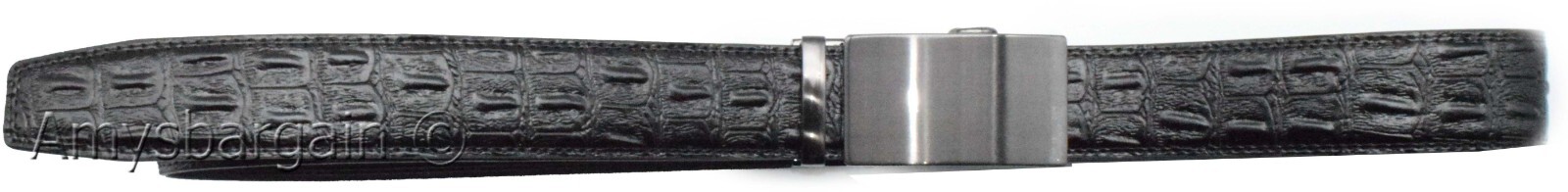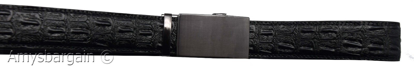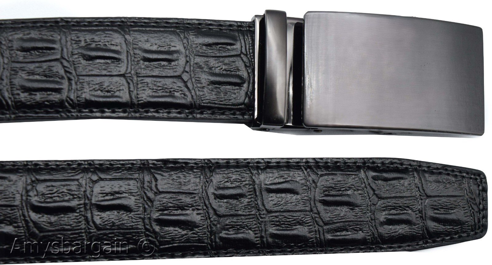 Crocodile skin printed leather men's ratchet belt casual adjustable auto buckle.