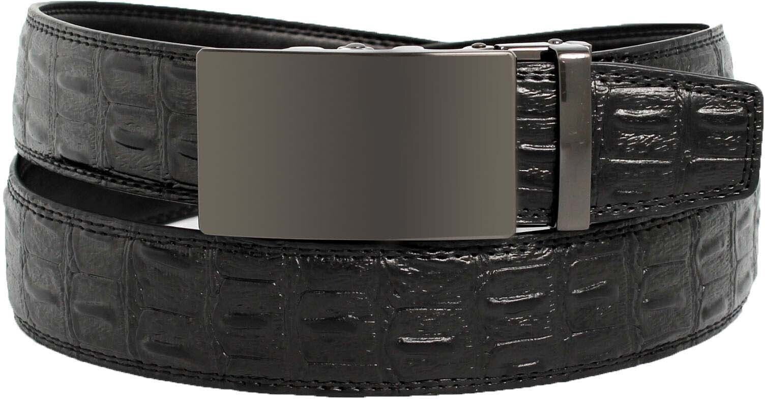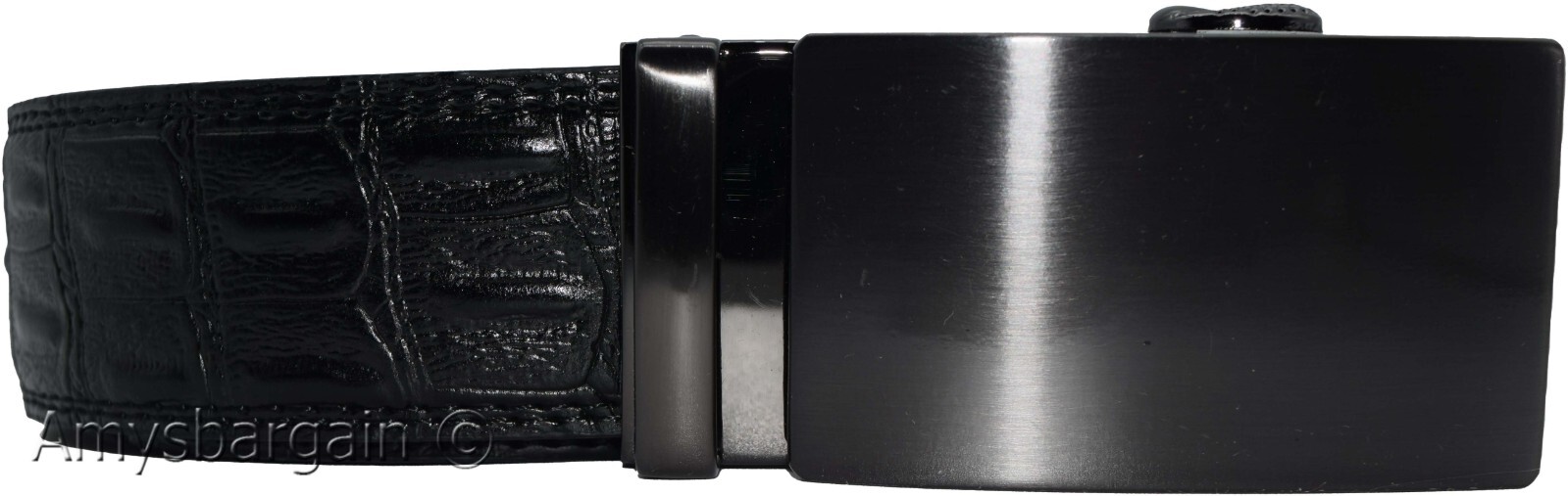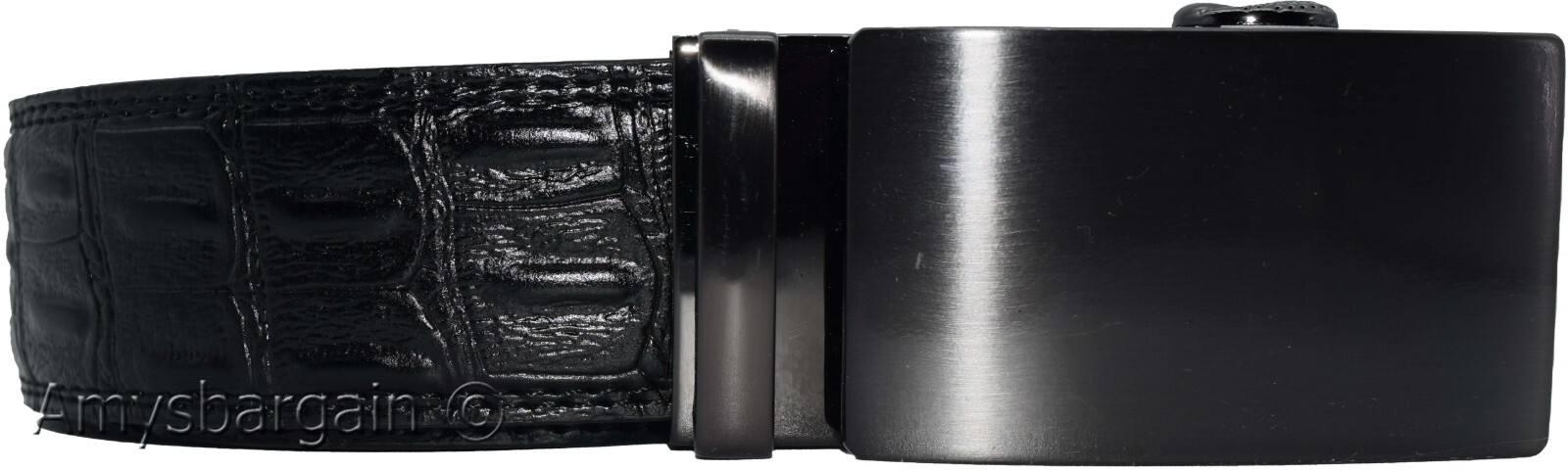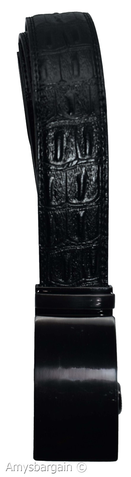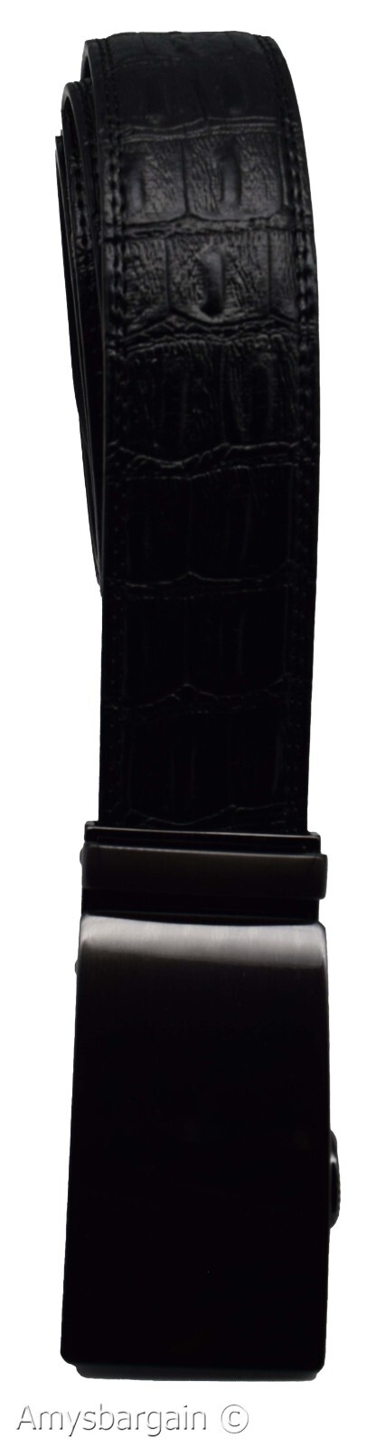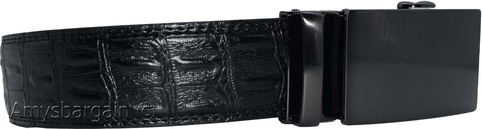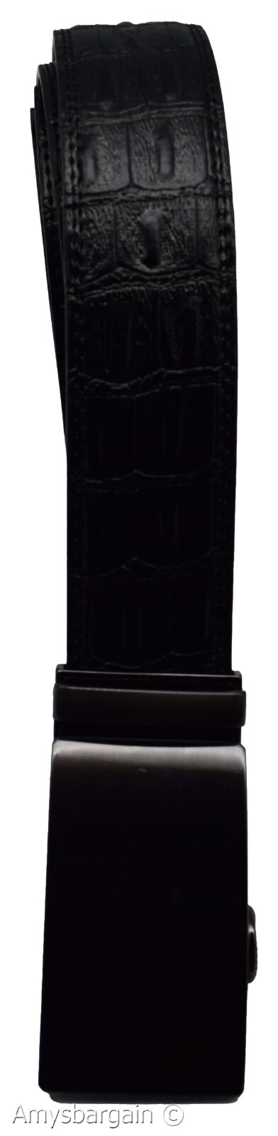 Crocodile skin printed leather men's ratchet belt casual adjustable auto buckle.
