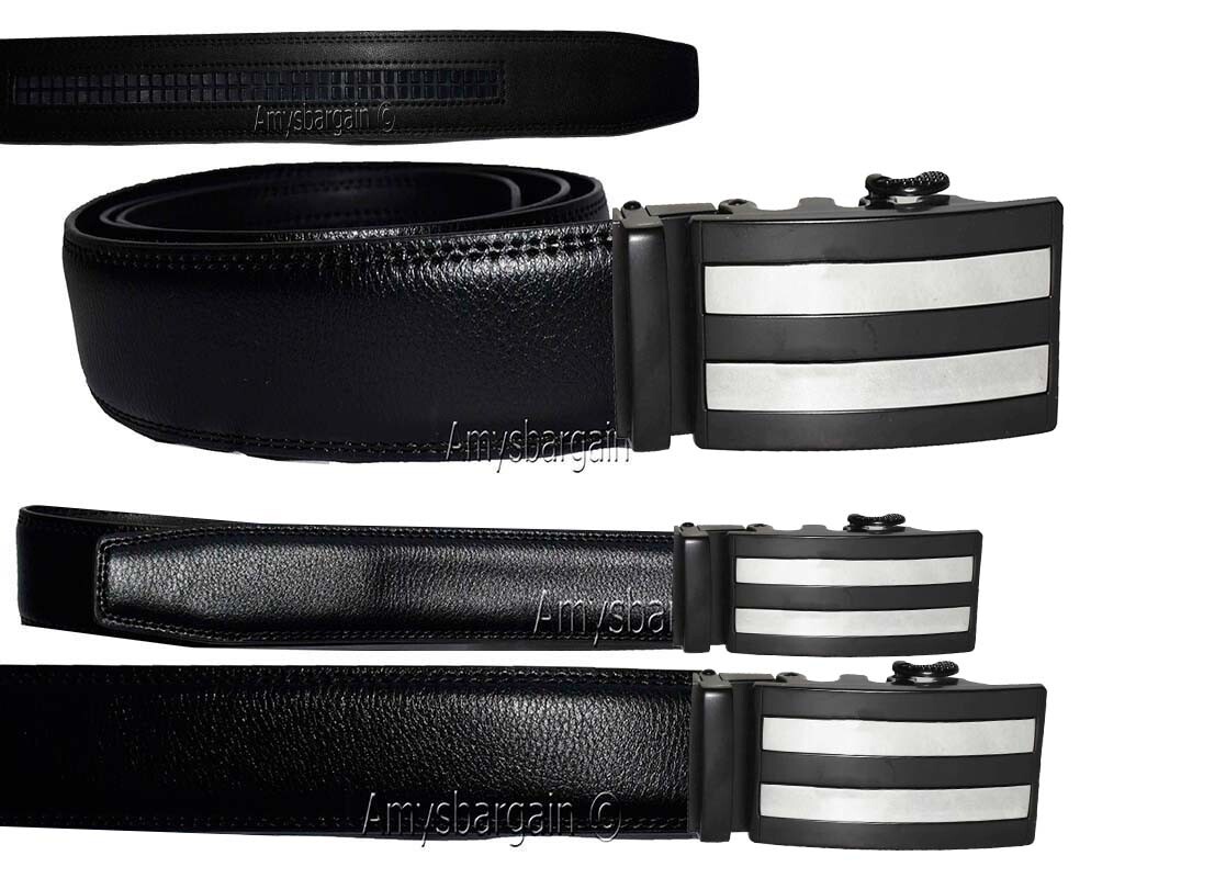 Genuine leather men's ratchet belt men's casual adjustable automatic buckle 50"*.