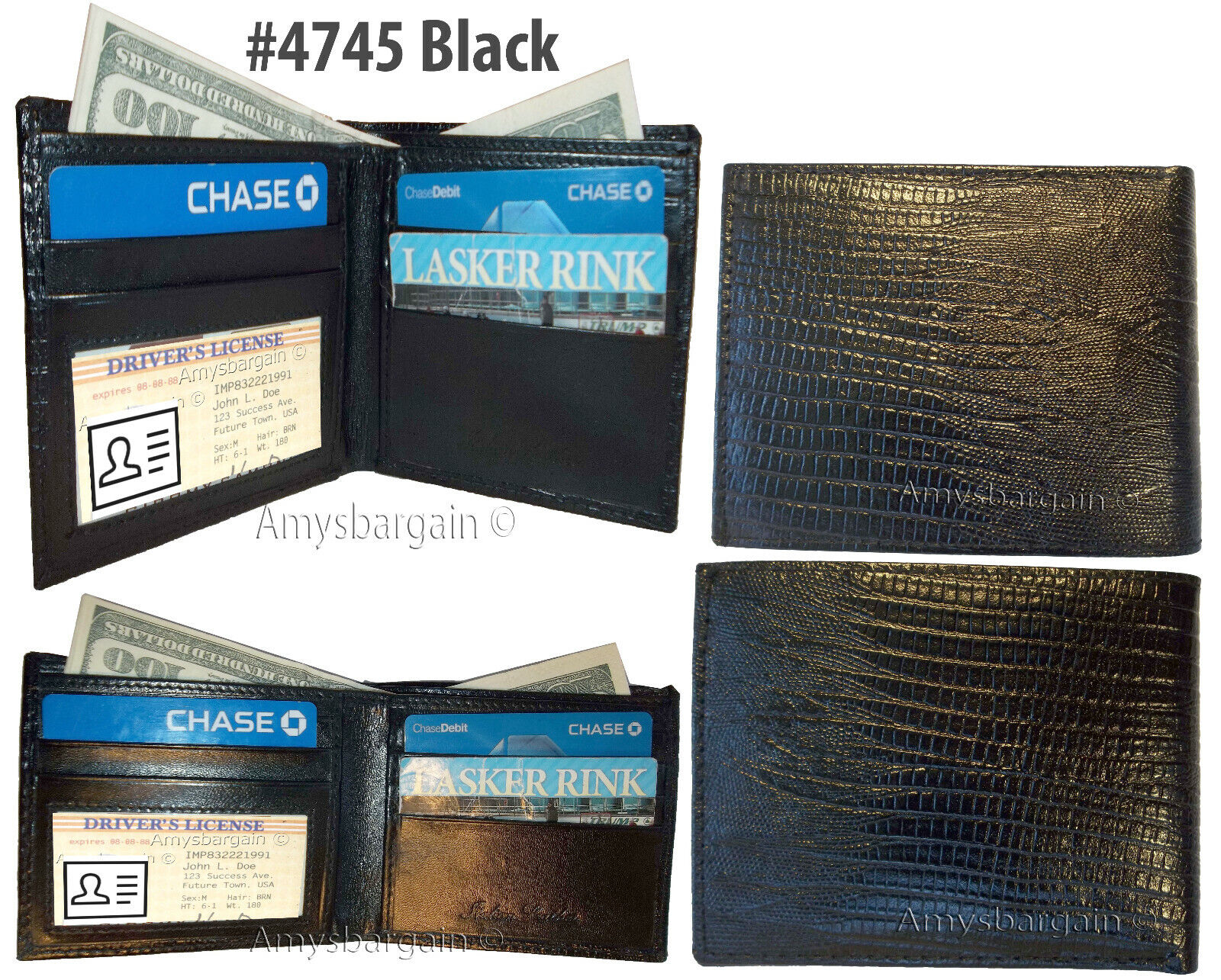 Description:This is a very stylish Italian style lizard printed leather mans wallet with an easy-in-out ID case. It has 2 billfolds and 6 card slots. This wallet would make a nice gift for that special someone that has it all, or treat your selves to its qualities.It has an easy in-and-out ID window, 6 card spaces and 2 lined bill fold pockets.Item Details:
