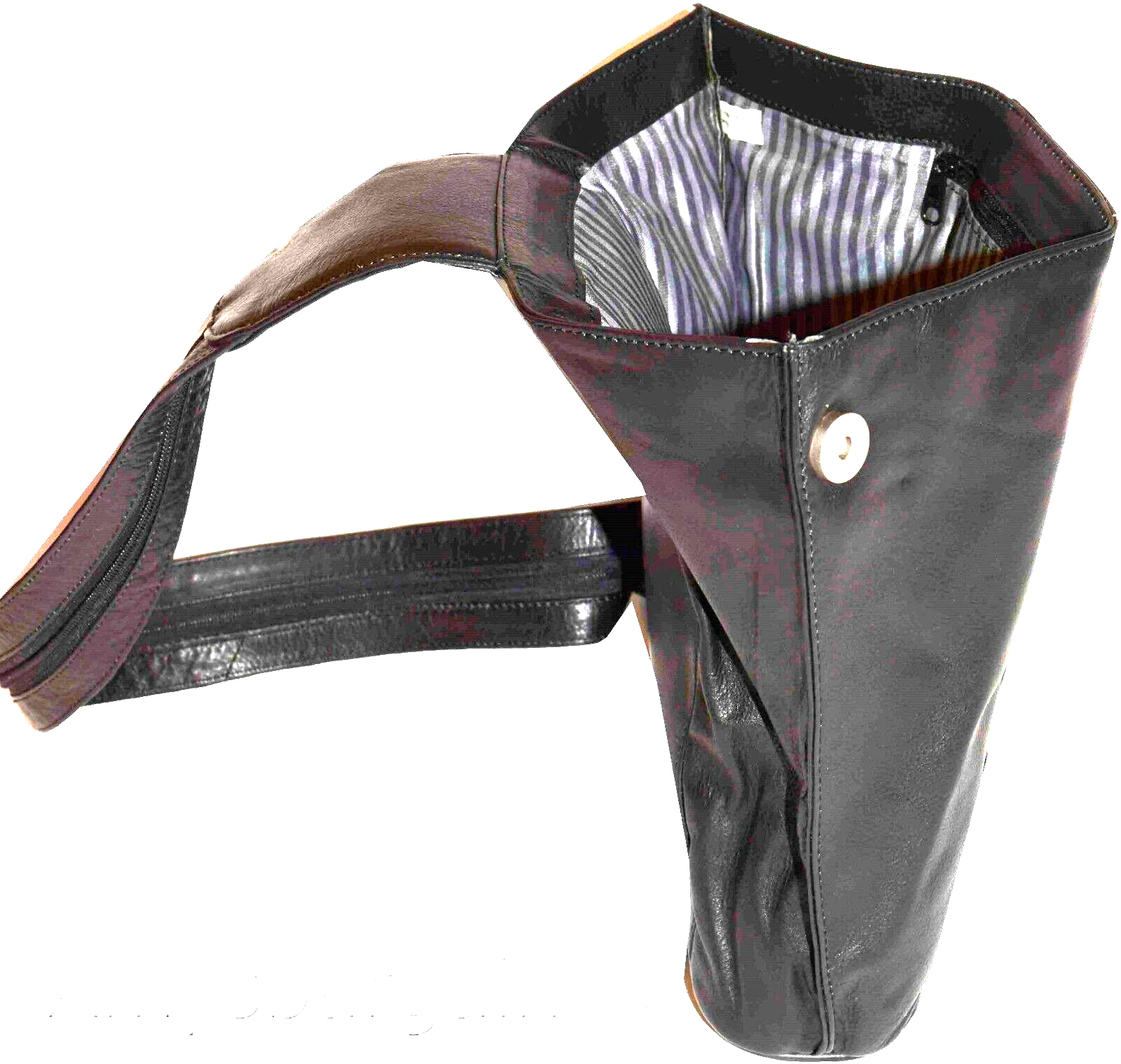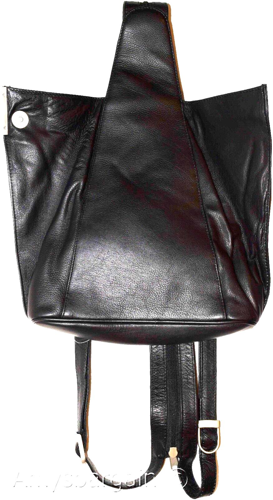 It is made out of genuine soft leather. It has a main compartment and its 2 back straps can easily be zipped together as one; and they are adjustable.