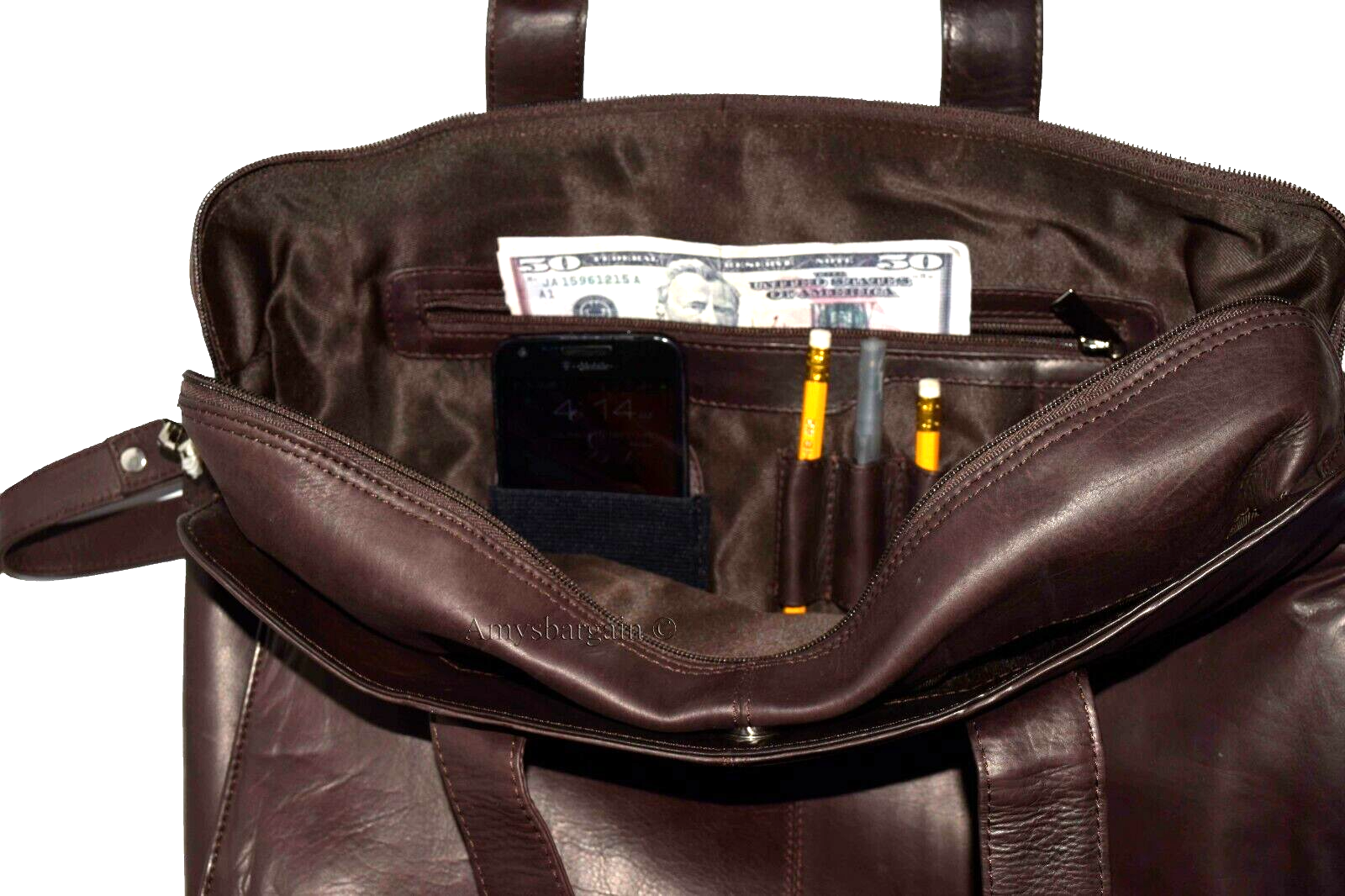 Leather briefcase case w/ 2 handles business case attaché case new carryon bag.