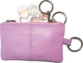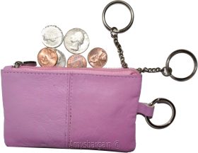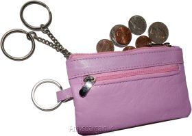 Leather change purse, Coin purse. Zip coin wallet, 2 pocket coin case w/key ring