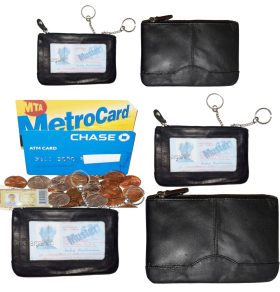 Leather Change Purse Mini Pocket Wallet business card case key Ring #33 Lot of 2.