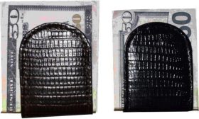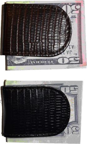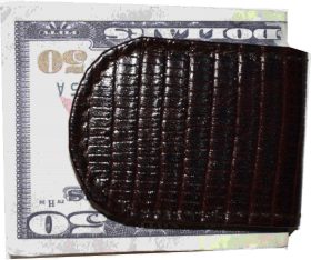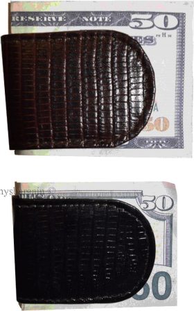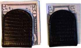 - Item: Lizard skin printed leather money clip.